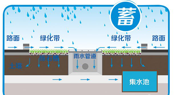 “蓄”,就是把雨水留下來,要尊重自然的地形地貌,使降雨得到自然散落,